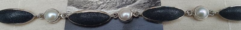 Armband 925ér Silber Unikat Schmucksteine: Bernstein Lava Meeresauge Perlmutt